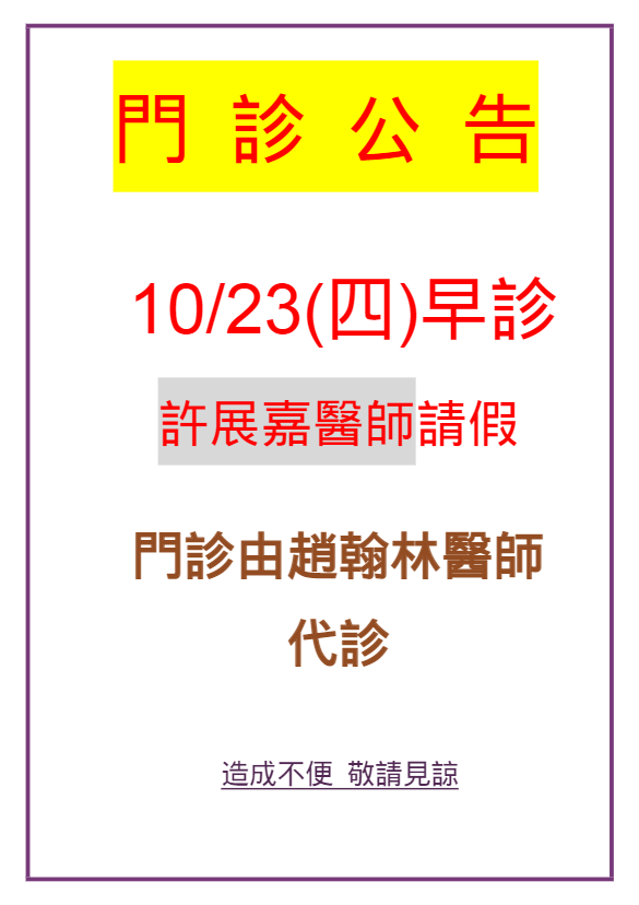10/23(四)許醫師早診請假公告